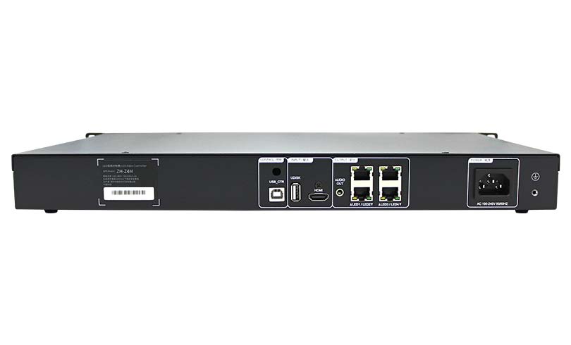 · 支持以下輸出信號接口:LAN(RJ45)×4(帶網口連接狀態指示),整機最大支持分辨率為260萬像素,支持自定義分辨率,最寬8192像素,最高4096像素;Audio音頻(PJ35)×1;