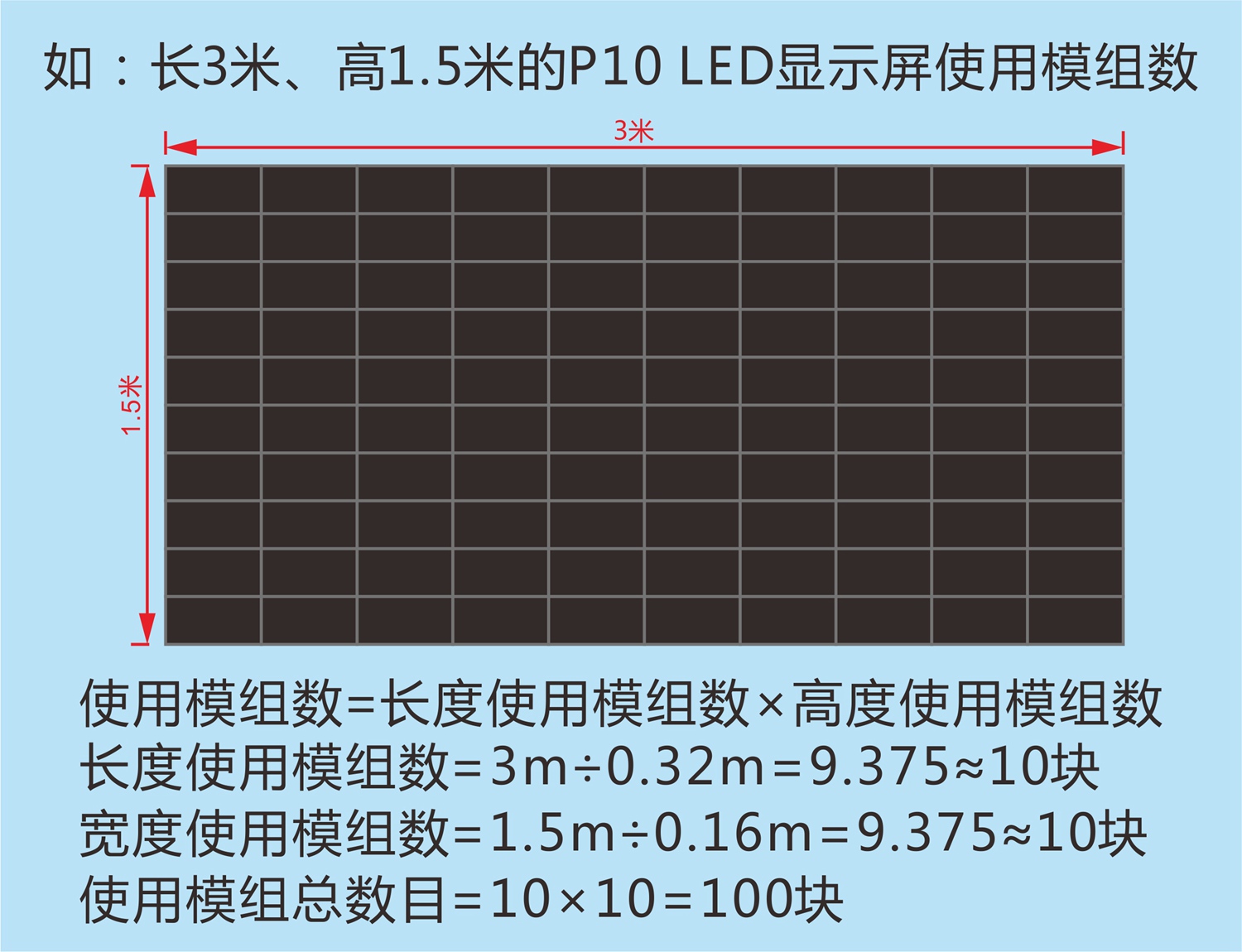 1、計算方法:使用模組數=總面積÷模組長度÷模組高度