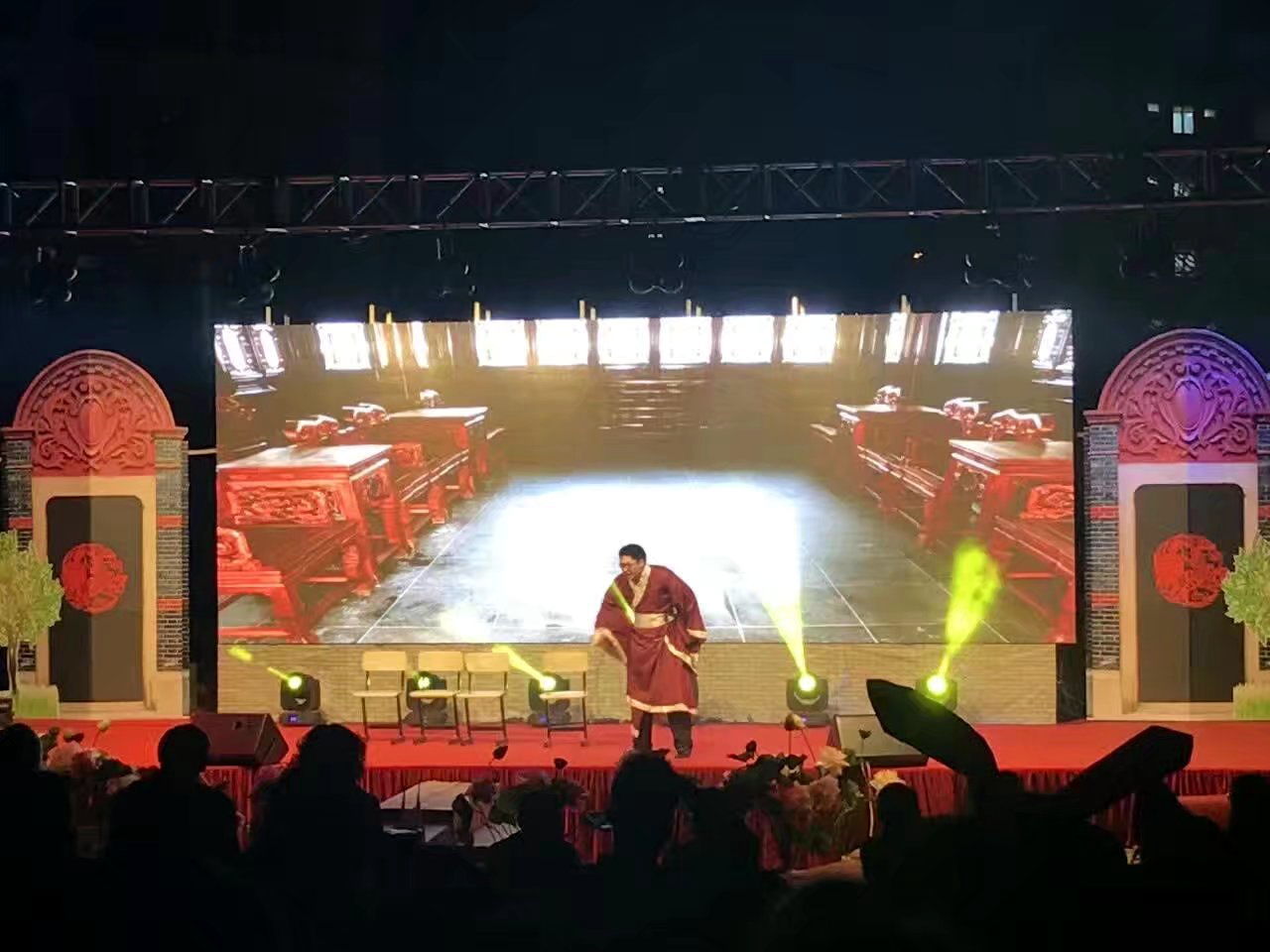湖北省鐘祥市某酒店,P4,總點(diǎn)數(shù)480*704,單卡最大帶載256*192,8張接收卡,一張發(fā)送卡完美帶載!