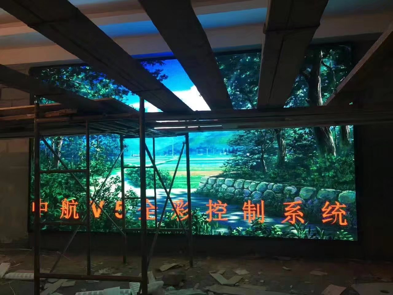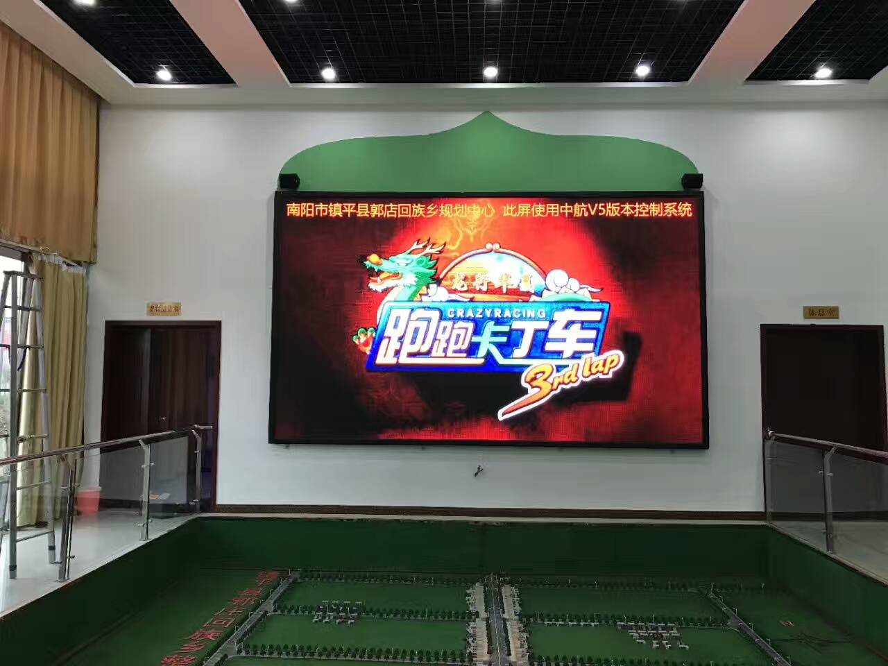 中航全新V5,打造全彩控制系統(tǒng)新格局!南陽市鎮(zhèn)平縣郭莊鄉(xiāng)規(guī)劃中心,戶內(nèi)P4十六掃,單卡最大帶載256*352,中航全新V5完美帶載!