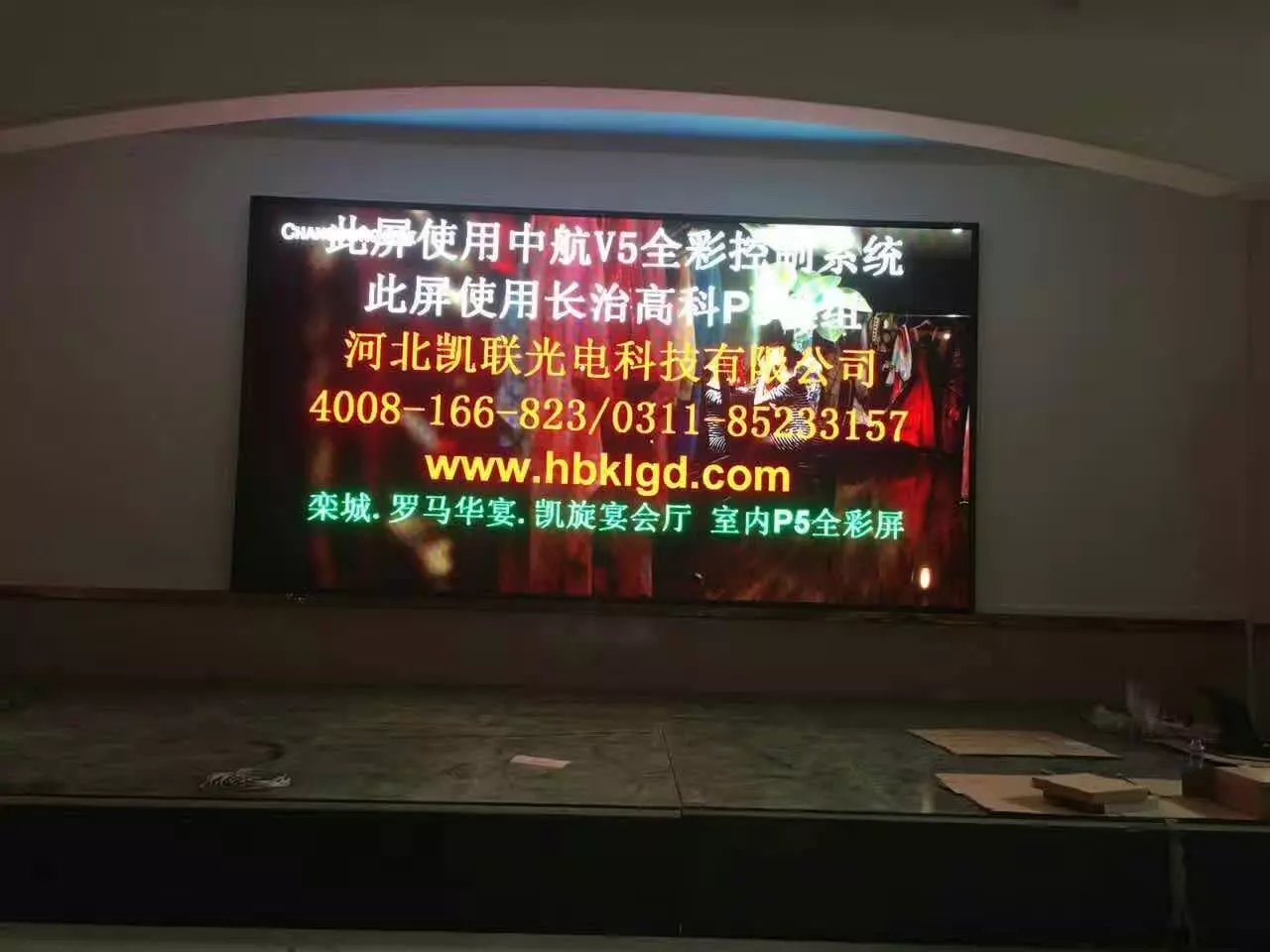 石家莊欒城區(qū)羅馬華宴:米蘭、凱旋、金門三個宴會廳,戶內(nèi)P5單卡帶載288*192,中航全新V5完美帶載,效果杠杠滴!