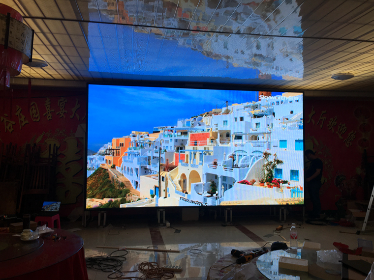 山東省齊河縣豐谷莊園喜宴大廳,室內p5,總點數960×512,單卡帶載點數192×256,十張接收卡,一張發送卡完美帶載!
