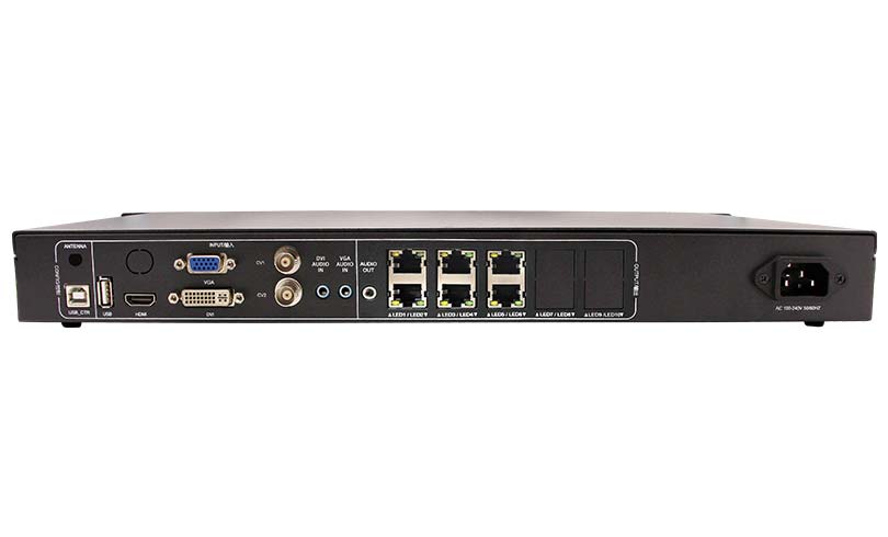 3. The following output signal interface is supported: LAN(RJ45)×6 (with network interface connection status indicator). The maximum resolution of the machine is 3.9 million pixels, support resolution customization. Pixels support: the Max width is 8192 and Max width is 2160.